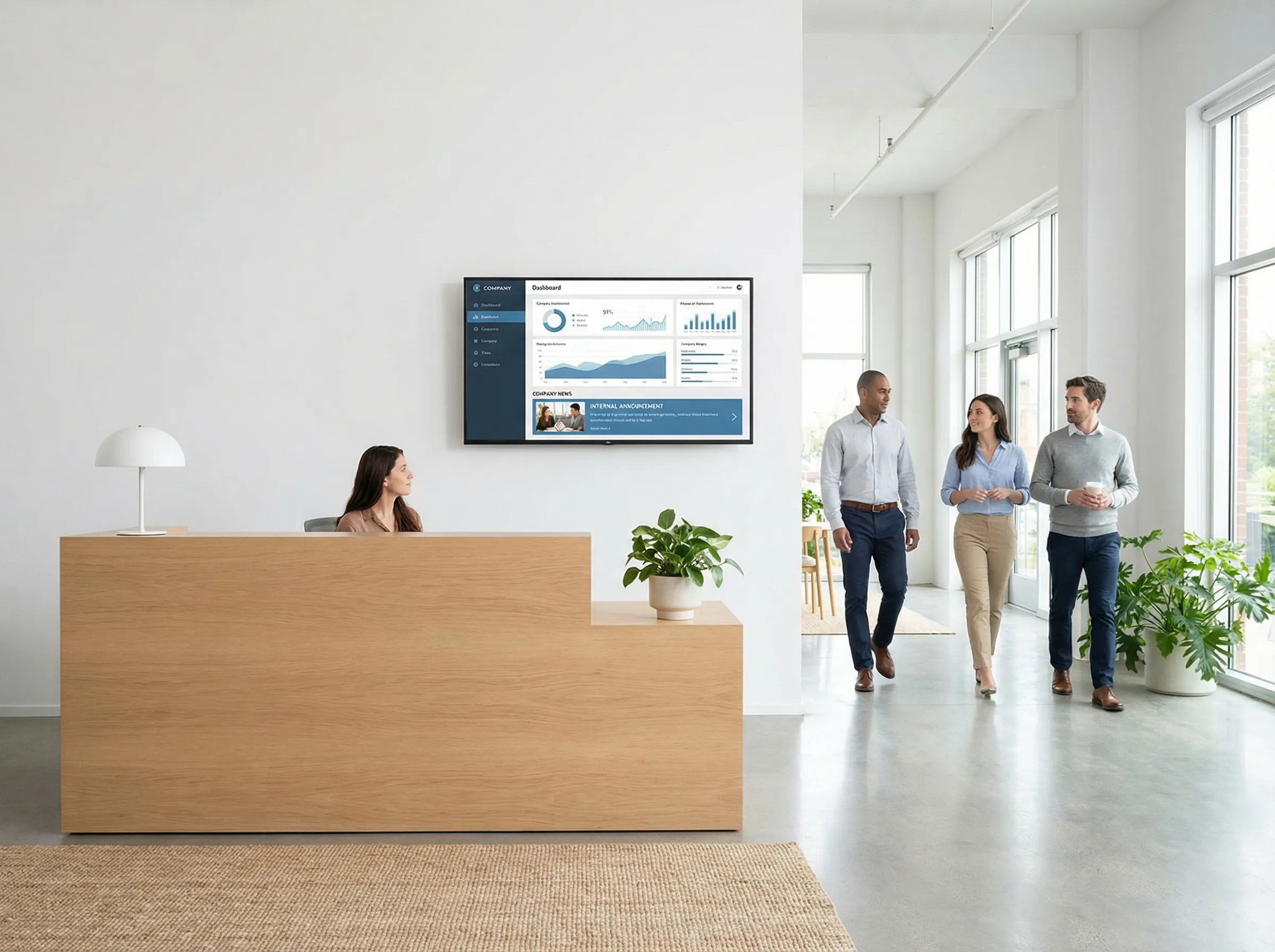 Infoskjermer og digital skilting for alle bransjer. Skybasert styring fra Vodacom.