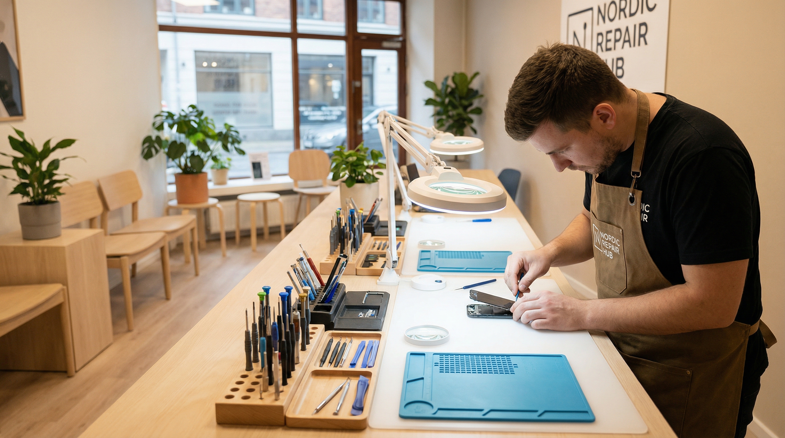 De fleste reparasjoner tar 3-5 virkedager. Skjermbytte kan ofte gjøres på 1-2 dager om vi har deler på lager.